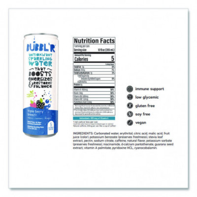 Bubbl'r Antioxidant uses natural flavors, colors, and caffeine sources to give consumers a bubbly burst of energy without any drawbacks of traditional caffeinated soda. With zero grams of sugar and no artificial sweeteners, Bubbl'r Antioxidant is the perfect drink for those looking for a soy-free, gluten-free, or low-glycemic option. Sure, the sparkling personality will make you fall in love at first sip, but then the real magic happens. Fruity effervescence and awesome antioxidants swoop in to balance the body and focus the mind, right before a boost of natural caffeine shows up to save your day.