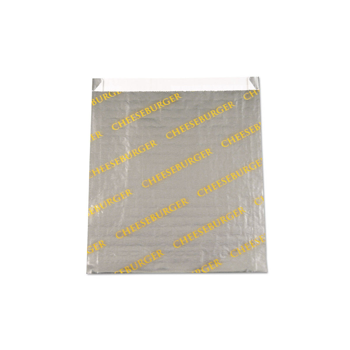 Foil/Paper/Honeycomb Insulated Bag, Cheeseburger Labeling, 6" x 0.75" x 6.5", Gray/Yellow, 1,000/Carton