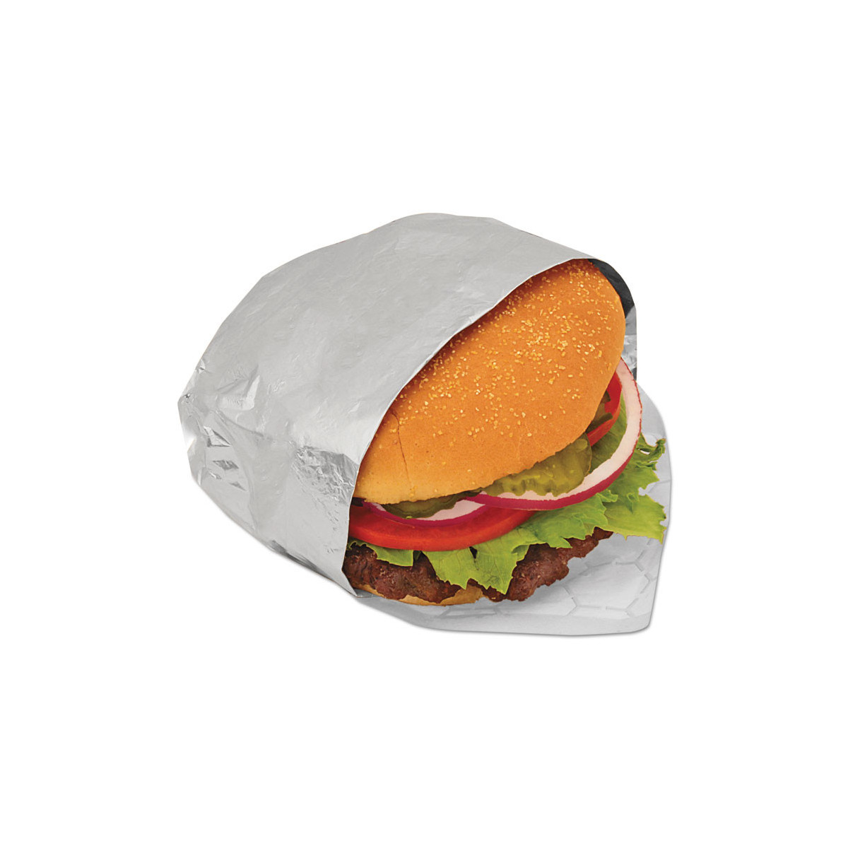 Superior dead-fold action ensures tight-hold wrapping. Two layers: reflective foil and moisture-absorbing paper help keep crispy breads and buns fresh. Honeycomb design creates air pockets, enabling superior heat retention.