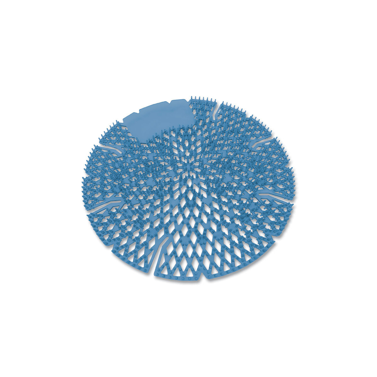 40% more fragrance and surface area than a traditional vinyl urinal screen. It is made from a specially engineered copolymer that is impregnated with a powerful organic odor-counteracting compound. It incorporates a two-sided anti-splash texture, preventing splash back and cross-contamination of urine to other areas outside the restroom. Flexible for a proper fit to any urinal contour. The translucent design offers a clear view of the drain to ensure it remains free-flowing as it collects debris before the drain is clogged. Safe for use in waterless urinals as well.