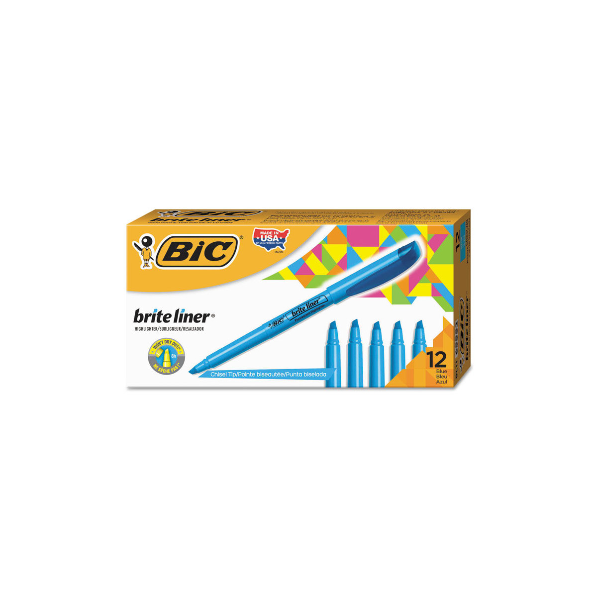 Brite Liner Highlighter, Fluorescent Blue Ink, Chisel Tip, Blue/Black Barrel, Dozen