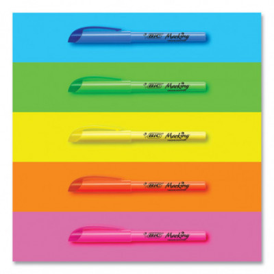 Whether you're organizing your notes or underlining passages in a textbook, BIC Brite Liner Highlighters make highlighting fun and easy. These highlighters come in a highly visible, fluorescent color, allowing you to easily color-code and emphasize information. Each highlighter has a versatile, firm chisel tip that allows you to seamlessly switch between broad highlighting and precise underlining. BIC Brite Liner Highlighters can be left uncapped for up to eight hours without drying out. And thanks to their convenient pen-shaped design, these flourescent highlighters are easy to grip and use.