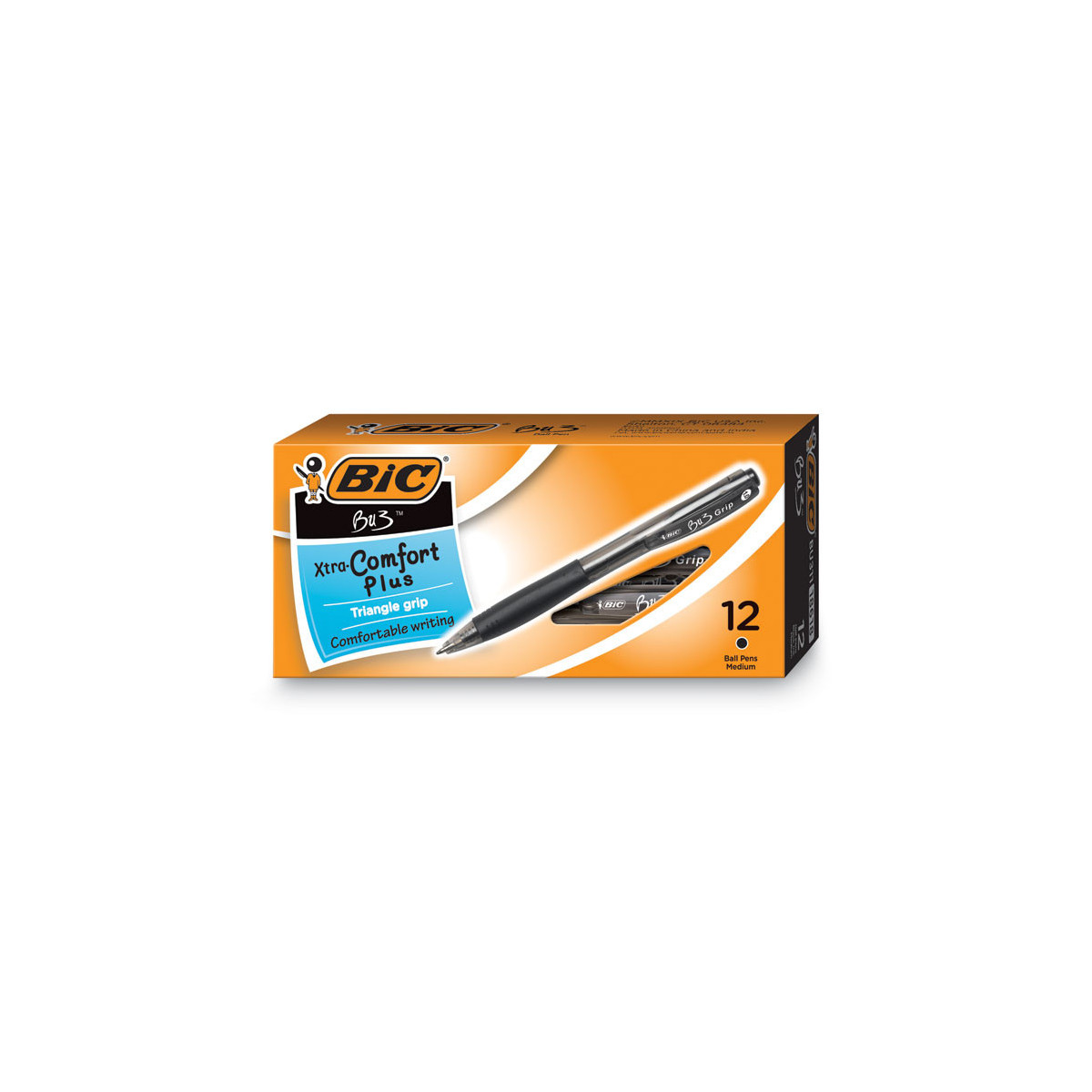BIC BU3 Grip Retractable Ball Pens deliver functionality and style. Equipped with a side-click retraction mechanism for added convenience, these pens allow you to easily extend and retract the writing point with a simple click. Each pen has a 1.0mm medium ball point that is versatile enough to handle a variety of writing applications. The sleek barrel design offers stylish looks at a great value, and the specially designed grip provides added comfort and control while writing. A great choice for home or the office.