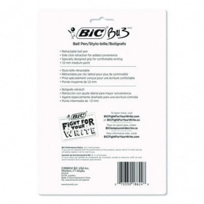 BIC BU3 Grip Retractable Ball Pens deliver functionality and style. Equipped with a side-click retraction mechanism for added convenience, these pens allow you to easily extend and retract the writing point with a simple click. Each pen has a 1.0mm medium ball point that is versatile enough to handle a variety of writing applications. The sleek barrel design offers stylish looks at a great value, and the specially designed grip provides added comfort and control while writing. A great choice for home or the office.