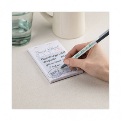 Ballpoint pen is made of recycled plastic and the packaging is made entirely of recycled materials. It has a multipurpose ballpoint tip and long-lasting ink delivers hours of writing. The slender, round semi-clear barrel is not only comfortable to (be)hold, but it's also got a handy window for checking your ink level. Use the convenient clip to hook it onto your pocket or notebook and take it everywhere you go. And since it's retractable, there's no cap to lose!