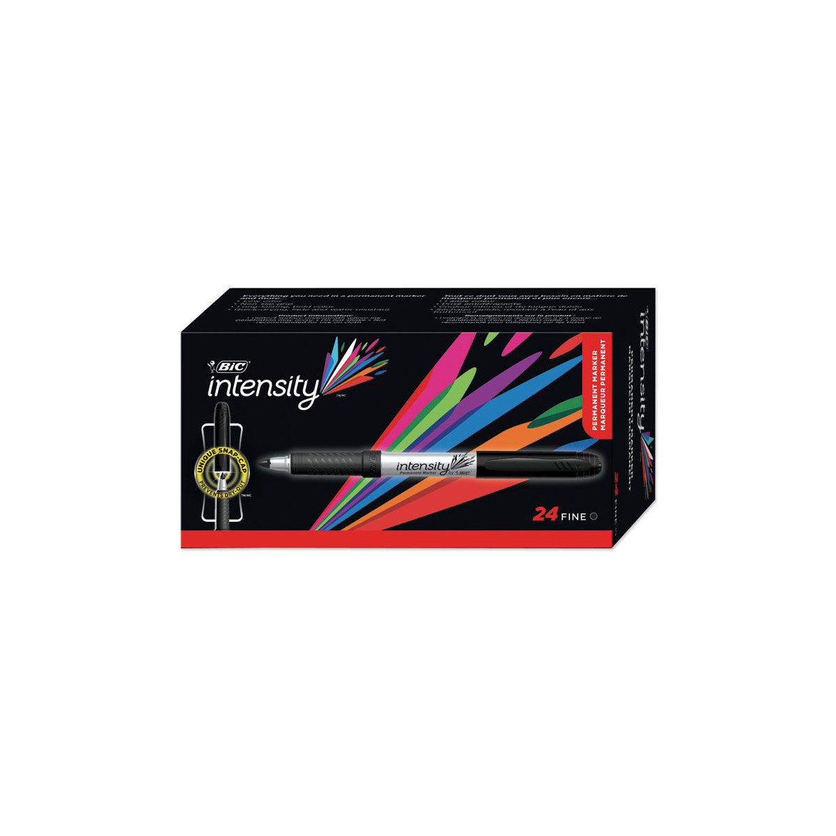 BIC Intensity Permanent Marker is a durable permanent marker with bold, long-lasting color. Each marker features a unique snap cap with a vapor seal locking mechanism to help prevent dry-out. The soft, non-slip grip offers comfort and enhanced control, while the durable fine point creates crisp, precise marks that stand out. Capable of marking on a wide variety of surfaces, this low-odor, non-toxic marker has acid free ink, making it a great choice for use at home, school, or the office.