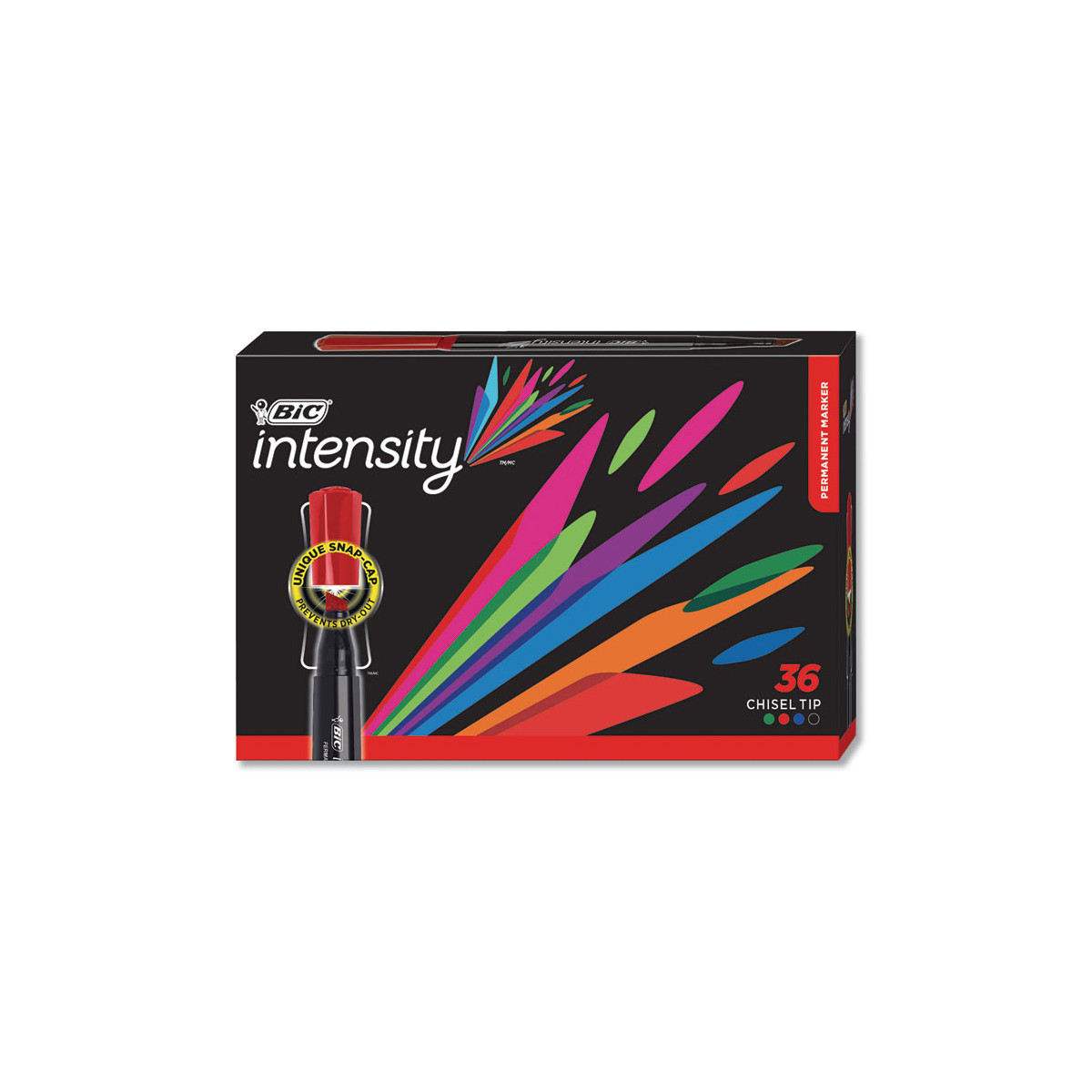 Create bold lines on virtually any surface with the BIC Intensity Permanent Marker. Featuring vibrant, fade-resistant ink, this tank-style permanent marker works reliably on a wide variety of surfaces, including glass, metal, plastic, photos, foils, coated paper, and even oily surfaces. The extra-wide chisel tip makes is easy to create both broad and fine lines, while a unique cap snaps closed to lock in vapors, preventing dry-outs. Once applied, the low-odor, acid-free ink dries quickly, making this marker a great choice for everything from crafting projects to outdoor chores.