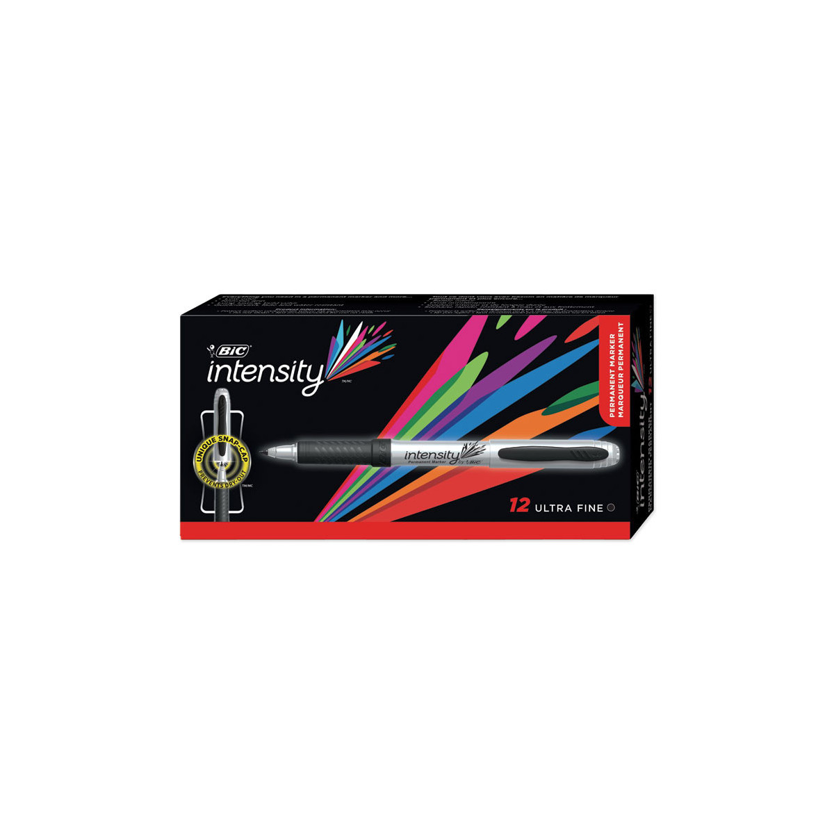 BIC Intensity Permanent Markers bring bold, colorful flair to your creations. With a unique Snap Cap feature, the hassle of marker dry-out stops here! Each marker features an ultra fine point for sharp, crisp lines and a comfortable, non-slip grip for enhanced control. The low-odor, acid-free ink (no added acid, no measurable pH) marks on almost any surface—from glass and metal to photos and foils—making these vibrant, non-toxic markers a great choice for home, school, or the office.