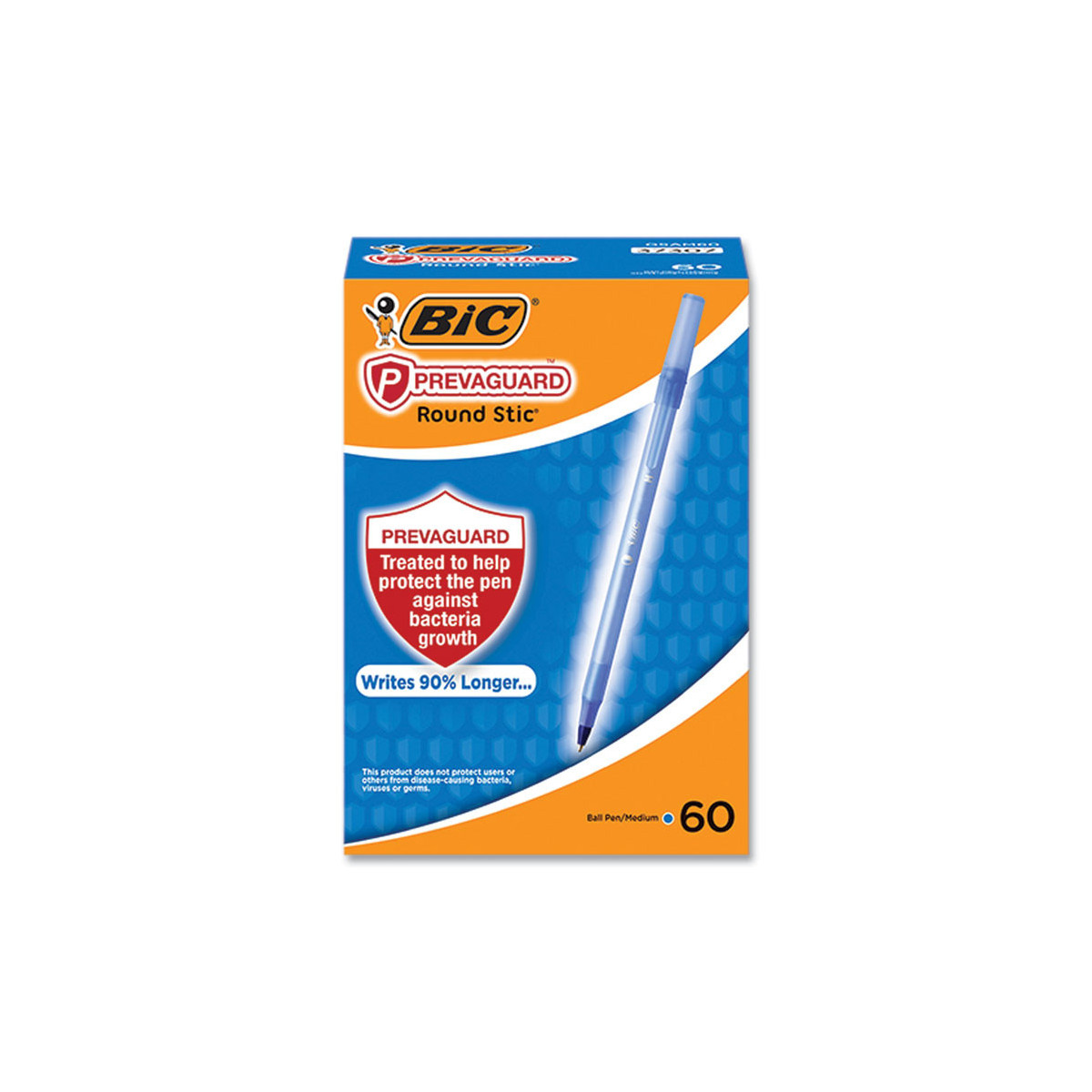 BIC Prevaguard Round Stic Ballpoint Pen contains an antimicrobial agent incorporated into the plastic that protects the pen itself by suppressing the growth of bacteria, algae, fungus, and mildew. These products protect the pens themselves and do not protect users or others from disease-causing bacteria, viruses, or germs. The antimicrobial agent should last the lifetime of the pen's plastic unless the plastic is destroyed. Along with the antimicrobial agent on the pen, the Round Stic Pen is the BIC product you know and love. This pen also features a medium 1 mm ballpoint that delivers smooth writing to create vivid, highly visible lines ideal for note-taking, drafting, doodling, and other writing activities. PrevaGuard is a registered trademark of Koozie Group.