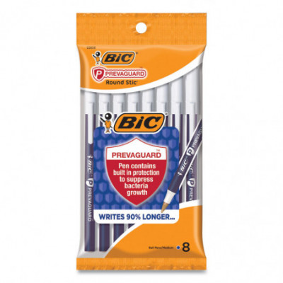 BIC Prevaguard Round Stic Ballpoint Pen contains an antimicrobial agent incorporated into the plastic that protects the pen itself by suppressing the growth of bacteria, algae, fungus, and mildew. These products protect the pens themselves and do not protect users or others from disease-causing bacteria, viruses, or germs. The antimicrobial agent should last the lifetime of the pen's plastic unless the plastic is destroyed. Along with the antimicrobial agent on the pen, the Round Stic Pen is the BIC product you know and love. This pen also features a medium 1 mm ballpoint that delivers smooth writing to create vivid, highly visible lines ideal for note-taking, drafting, doodling, and other writing activities. PrevaGuard is a registered trademark of Koozie Group.