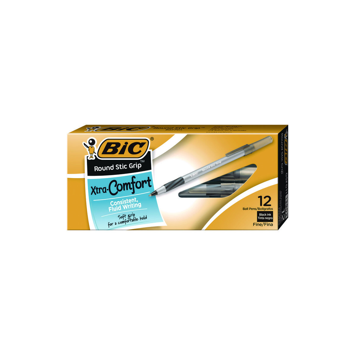 Writing the first time, every time, BIC® Round Stic Grip Xtra Comfort Ballpoint Pens combine exceptional performance with excellent longevity, making them a superb choice for everyday notetaking, journaling, schoolwork and more. Easy Glide Technology delivers smooth writing with a crisp, vivid result, while tungsten-carbide balls minimize the potential for skipping and blotting. Translucent barrel makes it easy to see how much ink remains; and for Xtra Comfort, each pen features a snug, comfortable grip.