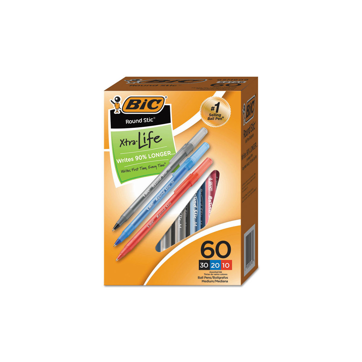 Round Stic™ Xtra Precision & Xtra Life Ballpoint Pens are dependable favorites that offer both excellent performance and a great value. Always laying down vivid lines, they're ideal for a variety of writing applications, from taking notes to doodling. Their flexible round barrels rest comfortably in your hand, while their translucent design keeps the remaining ink supply visible, so you'll always know when you're running low.