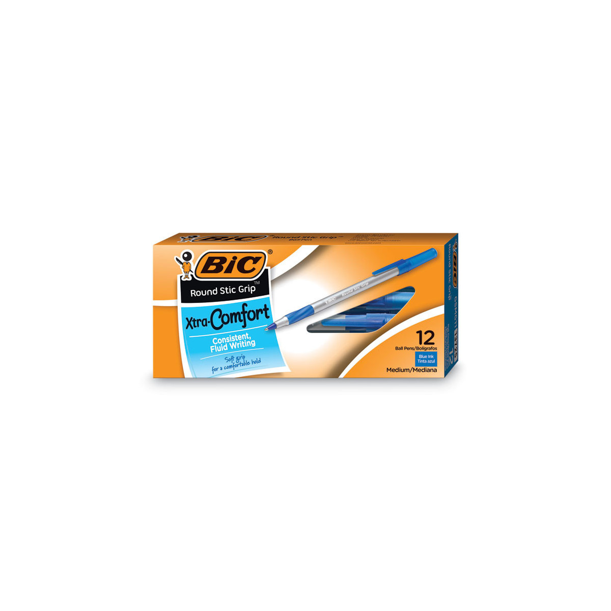 Writing the first time, every time, BIC® Round Stic Grip Xtra Comfort Ballpoint Pens combine exceptional performance with excellent longevity, making them a superb choice for everyday notetaking, journaling, schoolwork and more. Easy Glide Technology delivers smooth writing with a crisp, vivid result, while tungsten-carbide balls minimize the potential for skipping and blotting. Translucent barrel makes it easy to see how much ink remains; and for Xtra Comfort, each pen features a snug, comfortable grip.