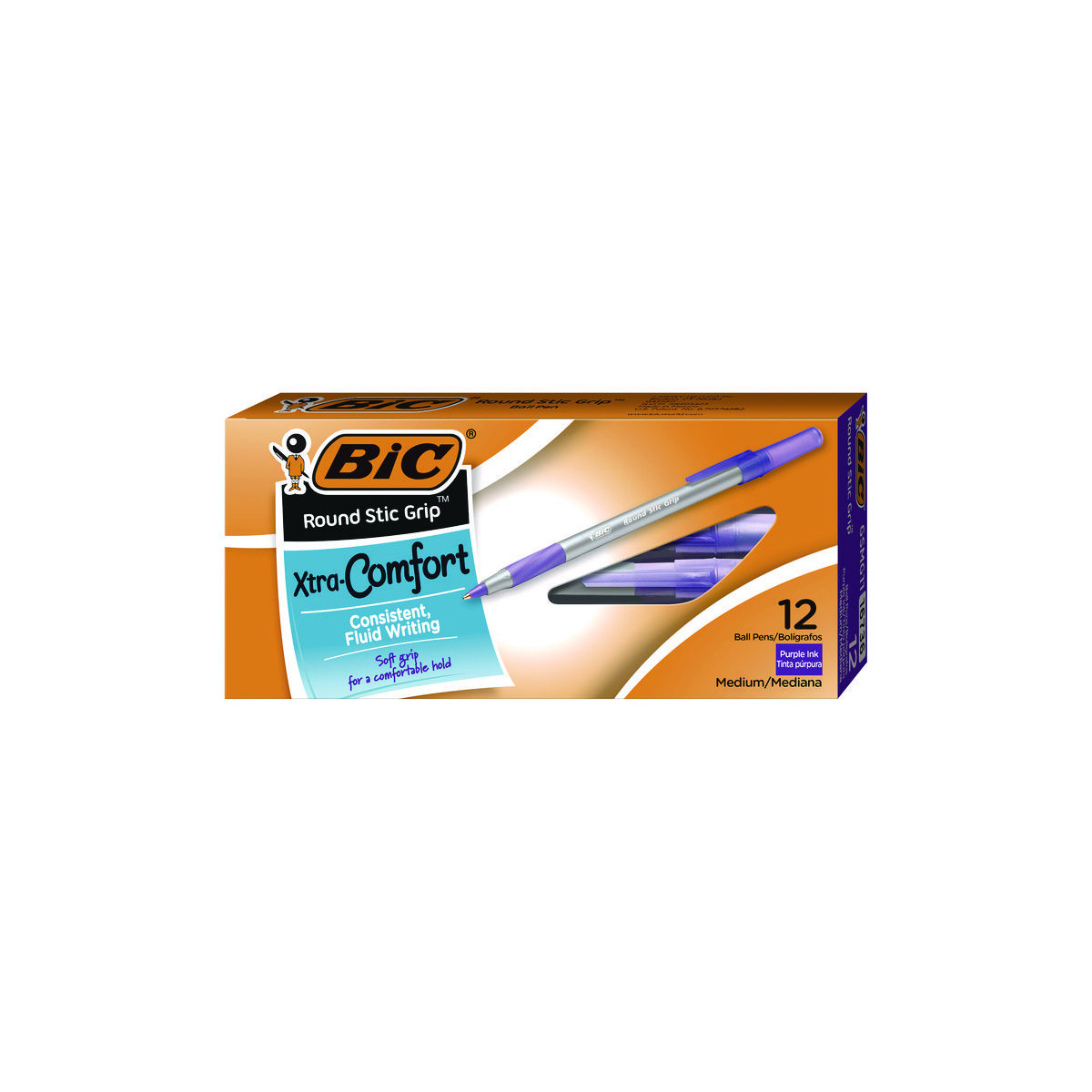 Writing the first time, every time, BIC® Round Stic Grip Xtra Comfort Ballpoint Pens combine exceptional performance with excellent longevity, making them a superb choice for everyday notetaking, journaling, schoolwork and more. Easy Glide Technology delivers smooth writing with a crisp, vivid result, while tungsten-carbide balls minimize the potential for skipping and blotting. Translucent barrel makes it easy to see how much ink remains; and for Xtra Comfort, each pen features a snug, comfortable grip.