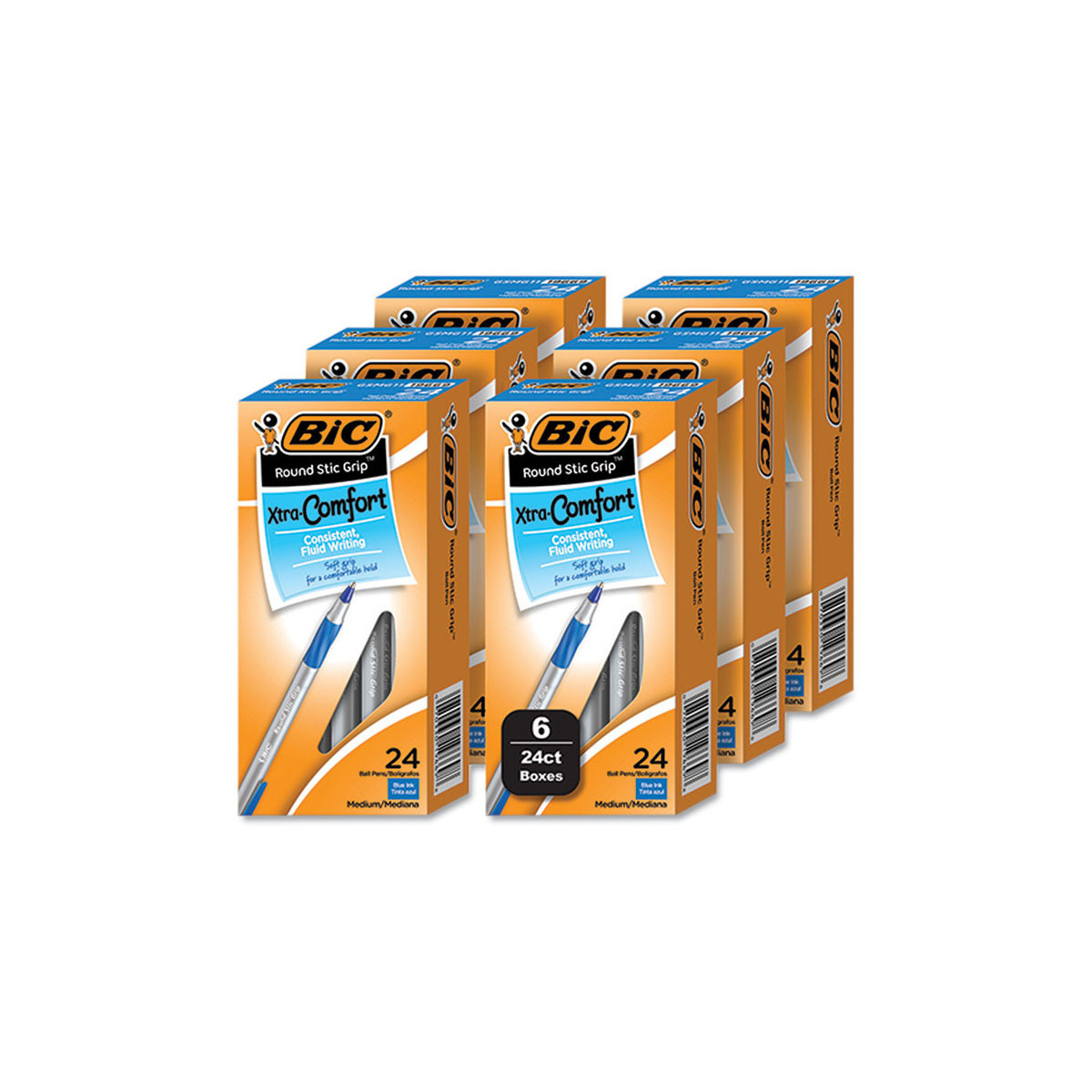 Writing the first time, every time, BIC® Round Stic Grip Xtra Comfort Ballpoint Pens combine exceptional performance with excellent longevity, making them a superb choice for everyday notetaking, journaling, schoolwork and more. Easy Glide Technology delivers smooth writing with a crisp, vivid result, while tungsten-carbide balls minimize the potential for skipping and blotting. Translucent barrel makes it easy to see how much ink remains; and for Xtra Comfort, each pen features a snug, comfortable grip.