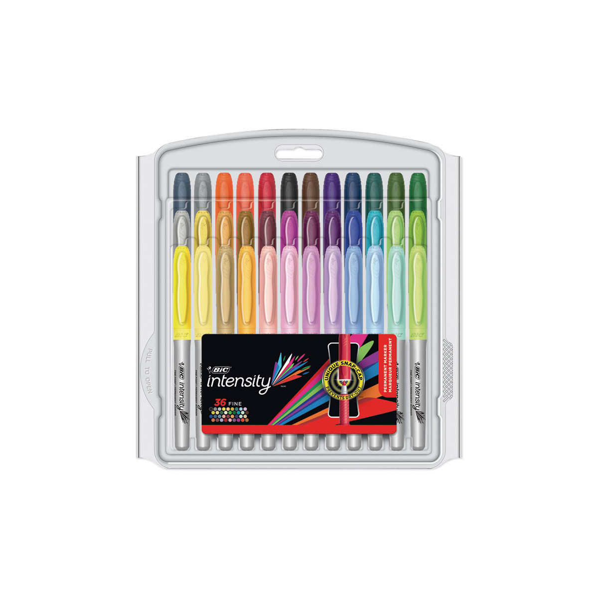 BIC Intensity Permanent Marker is a durable permanent marker with bold, long-lasting color. Each marker features a unique snap cap with a vapor seal locking mechanism to help prevent dry-out. The soft, non-slip grip offers comfort and enhanced control, while the durable fine point creates crisp, precise marks that stand out. Capable of marking on a wide variety of surfaces, this low-odor, non-toxic marker has acid free ink, making it a great choice for use at home, school, or the office.