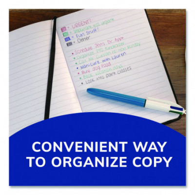 Express yourself in vivid color with the dependable and ultra-convenient BIC® 4-Color Ball Pen. This world-renowned multifunction pen lets you choose from four ink colors with a simple click, so there's no need to carry around multiple pens. It's a practical solution that's ideal for color-coding, organizing notes, editing others' work and more. Standard ballpoint ink is long-lasting, and the pen is refillable.