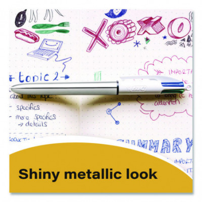 Express yourself in vivid color with the dependable and ultra-convenient BIC® 4-Color Ball Pen. This world-renowned multifunction pen lets you choose from four ink colors with a simple click, so there's no need to carry around multiple pens. It's a practical solution that's ideal for color-coding, organizing notes, editing others' work and more. Standard ballpoint ink is long-lasting, and the pen is refillable.