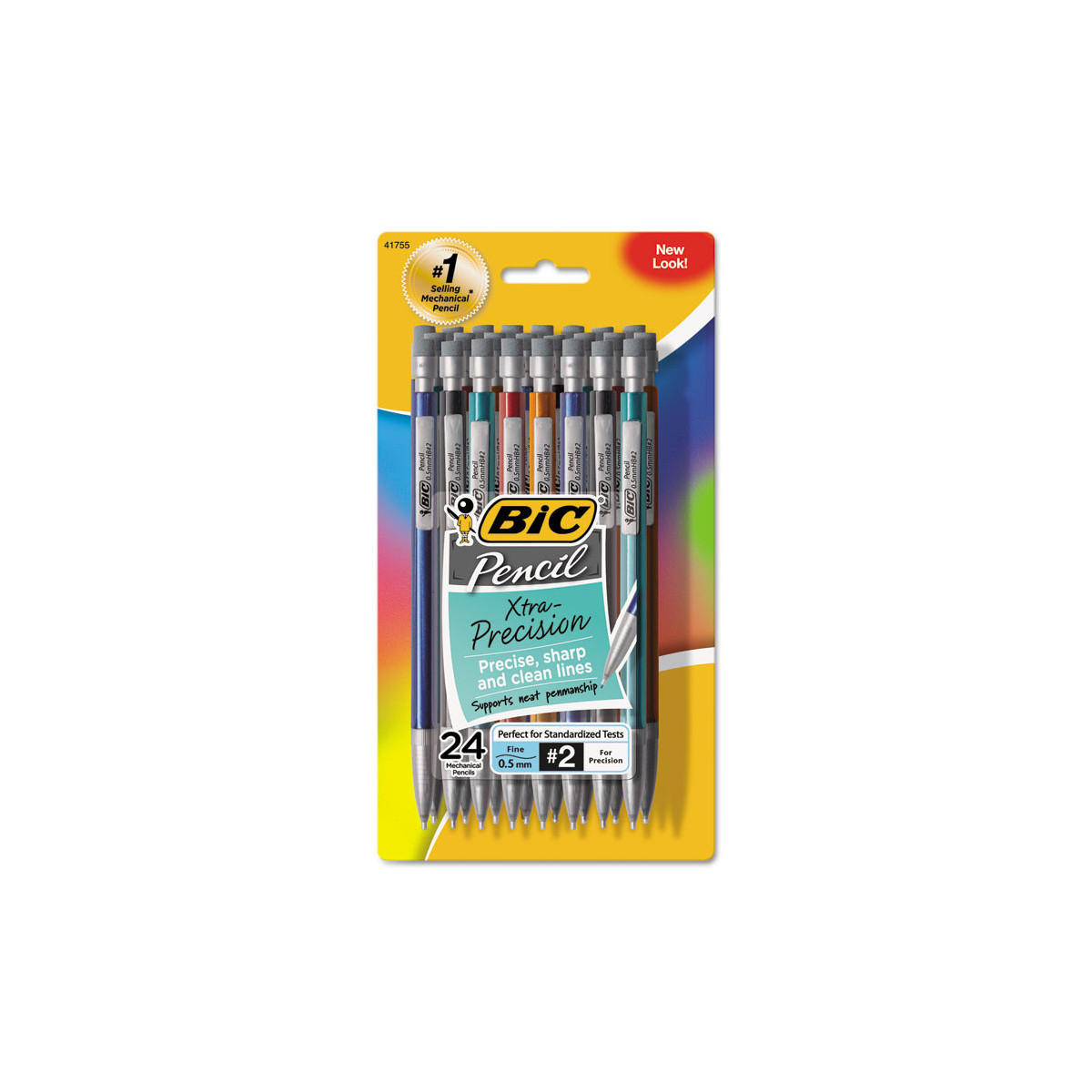 Ideal for detailed work or any time extra tidiness and accuracy are needed, the BIC Xtra-Precision Mechanical Pencil comes with fine 0.5 mm leads that lay down smoothly, do not smudge, and erase cleanly. The #2 lead advances easily with a simple click of the eraser and is perfect for standardized tests. Always sharp, ready, and accurate, these pencils eliminate the need to sharpen constantly, saving you time. The fun metallic barrel adds some color to your classroom, home, or office.