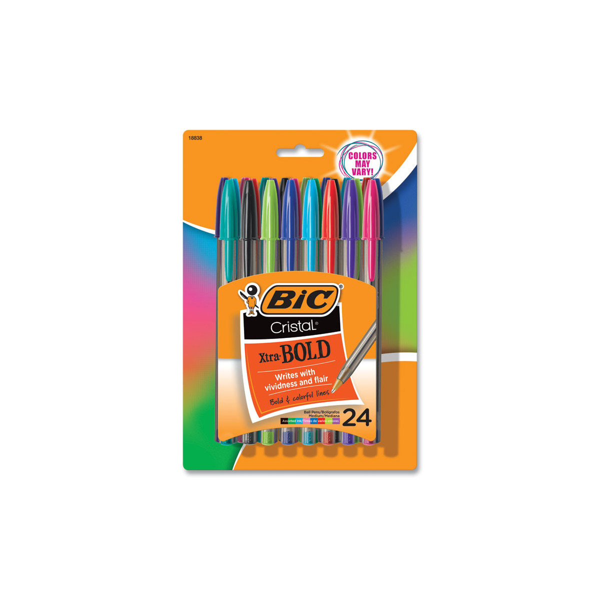 Enjoy ultra-smooth ink flow and a fluid, effortless writing experience with BIC Cristal Xtra Bold Ballpoint Pens. Featuring a translucent smoked barrel that keeps ink supply visible, these pens offer a sleek and modern twist on the classic BIC Cristal pen design. Each ballpoint pen comes equipped with a 1.6 mm bold point that creates striking, vivid lines. The Easy-Glide System ink technology delivers exceptionally smooth ink flow while enhancing vividness, making the Cristal pens ideal for adding bold flair to drawings and notes. With their iconic hexagonal barrels, BIC Cristal Xtra Bold Ballpoint Pens offer a firm and comfortable grip.