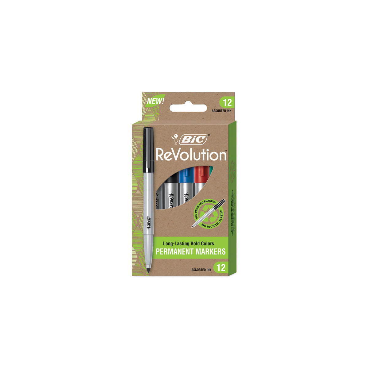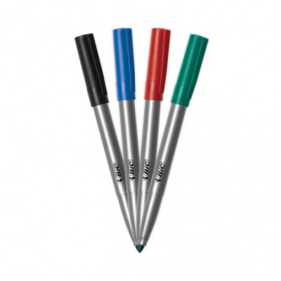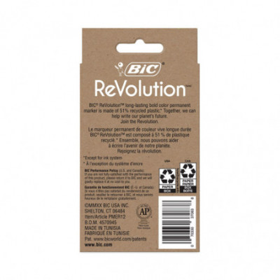These long-lasting BIC ReVolution fine permanent markers have sleek gray barrels made in part of recycled plastic. The paperboard used in this packaging is made up of entirely recycled materials. The bold ink is perfect for any and all projects. It's fine, precision bullet nib is great for creating vivid marks on glass, metal, photos, plastic and much more. Even better, these markers won't dry out for two weeks if they're left uncapped. Get quality permanent markers you can trust.