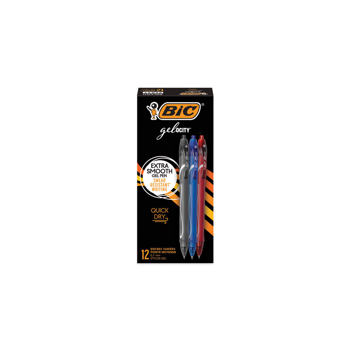 Enjoy a super-smooth writing experience with BIC Gel-ocity Quick Dry Gel Pens. Ideal for note-taking, journaling, and a variety of other everyday writing activities, these pens feature a super-smooth, smear-free, quick-drying ink that dries in as little as five seconds. The round barrel rests comfortably in your hand, while the 0.7 mm point creates vivid marks. This retractable gel pen allows you to extend and retract the tip with a simple click. Available in a variety of vibrant ink colors, these gel pens are sure to leave a fun, striking impression.