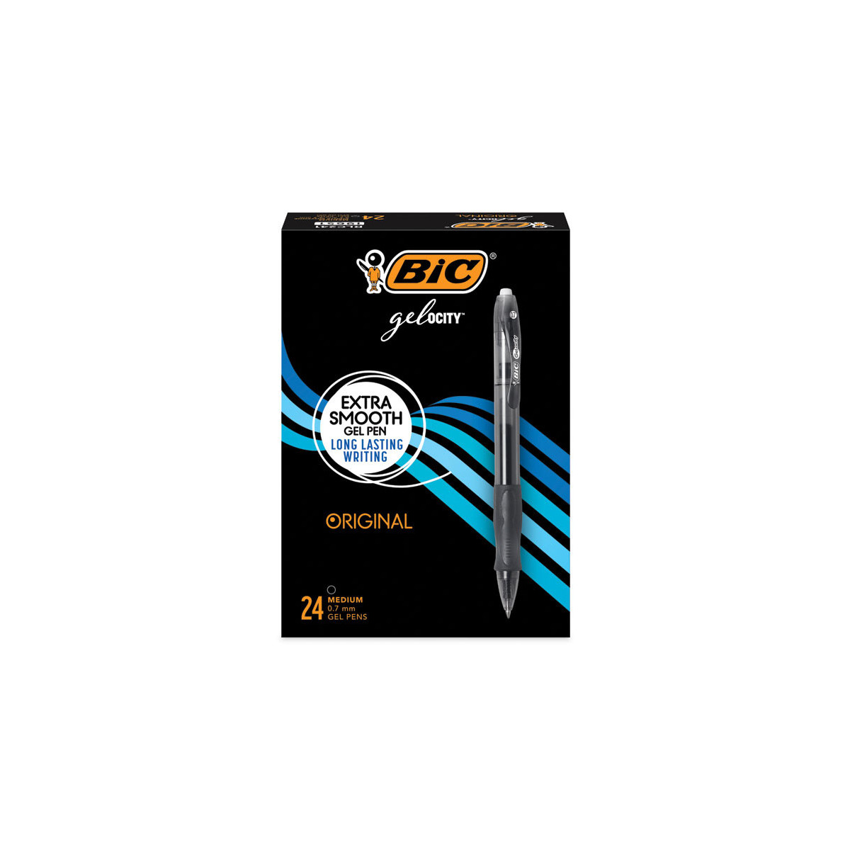 Enjoy a smooth writing experience with BIC Gel-ocity Original Retractable Gel Pens. Ideal for note-taking, annotating, and a variety of other writing tasks, these pens feature a contoured grip for comfort and control. The pen's fashionable translucent barrel shows the remaining ink supply, so you know when you are running out of ink. The 0.7 mm medium point makes vivid lines, while the convenient retractable design allows you to extend and retract the tip with a simple click.