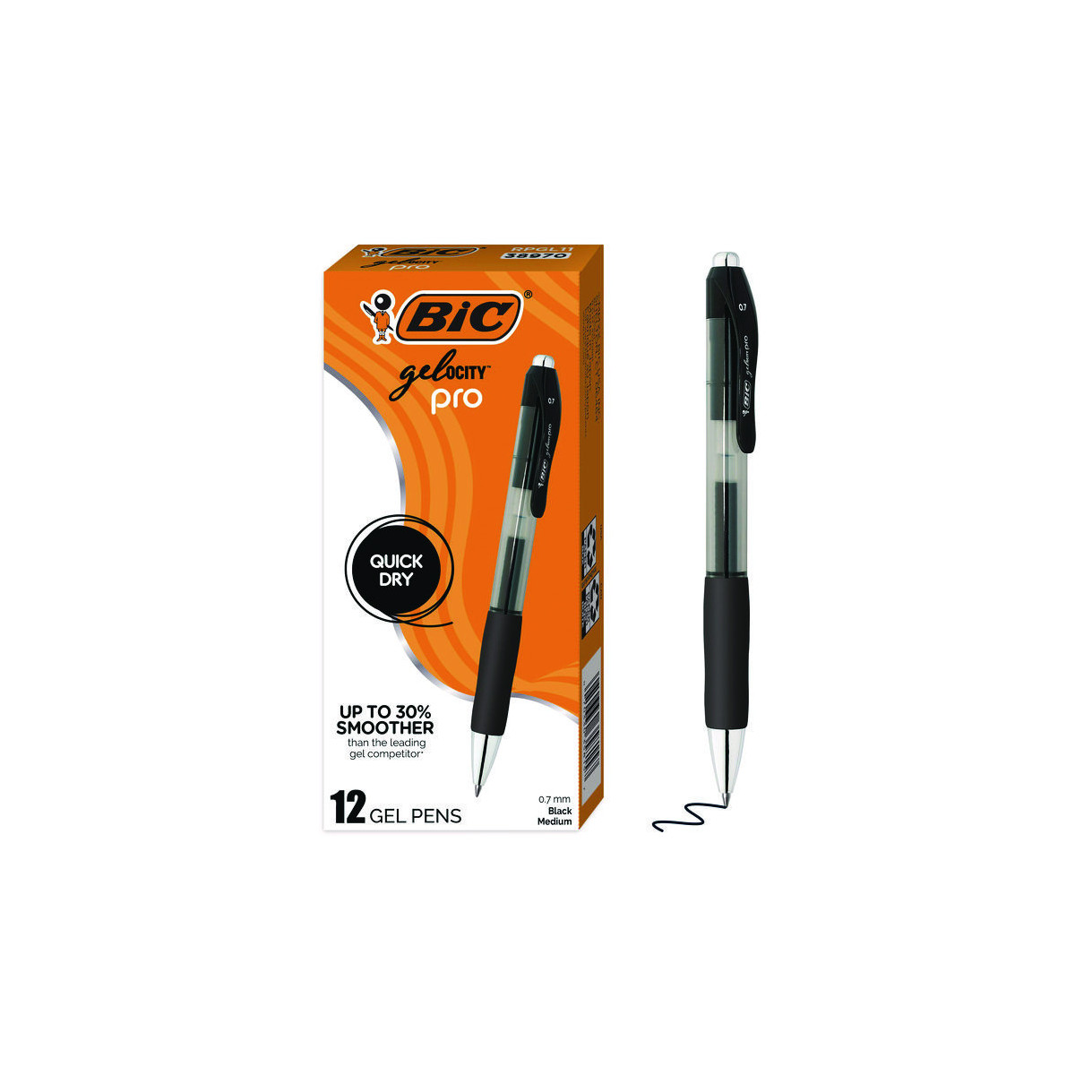 BIC Gelocity Pro Gel Pens bring a touch of elegance and reliability to your everyday writing. These pens feature a 0.7 mm medium point that delivers clear, smear-resistant lines, making them ideal for note-taking, list-making, or any writing task. Healthcare professionals will appreciate the super smooth writing experience, which is up to 30% smoother than the leading gel competitor. The smear-resistant ink is also a great choice for left-handed writers, drying in as little as five seconds. With an ultra comfortable grip, these pens ensure a controlled yet relaxed hold, perfect for long writing sessions. The retractable design and plastic clip add convenience, making these pens easy to attach to pockets or notebooks. BIC Gelocity Pro Gel Pens are a reliable, high-quality choice for all your writing needs. Individual smoothness may vary based on color.