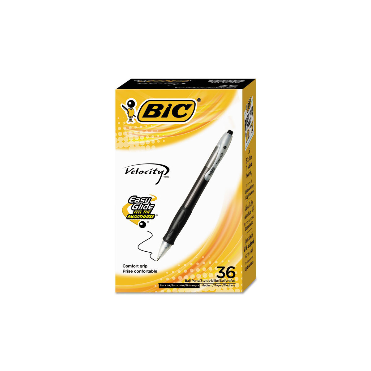 Velocity Easy Glide Ballpoint Pen Value Pack, Retractable, Medium 1 mm, Black Ink, Black Barrel, 36/Pack