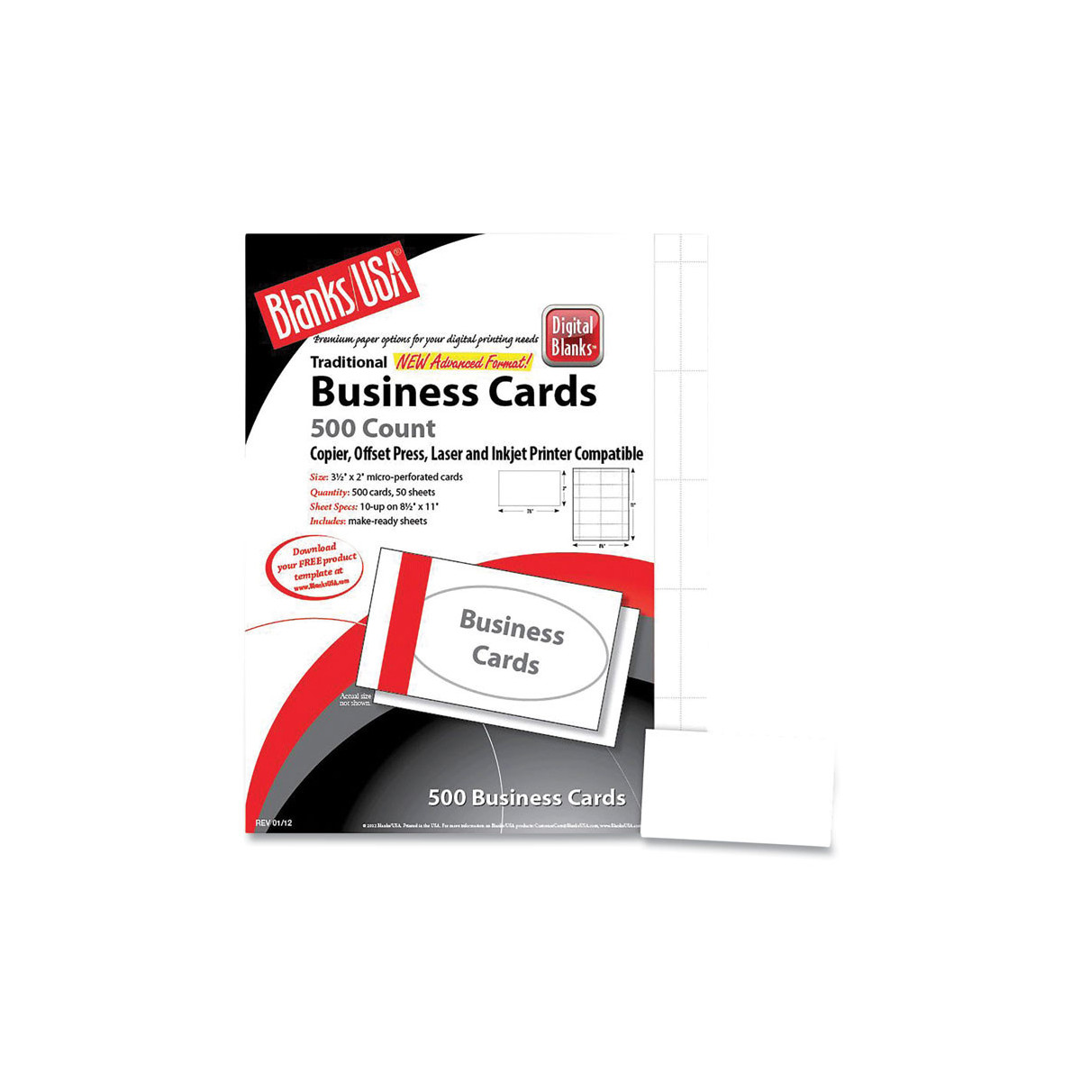 Heavyweight Printable Microperforated Business Cards, Copier/Inkjet/Laser/Offset, 2 x 3.5, White, 10/Sheet, 250 Sheets/Pack
