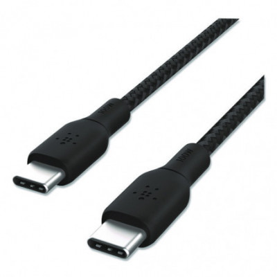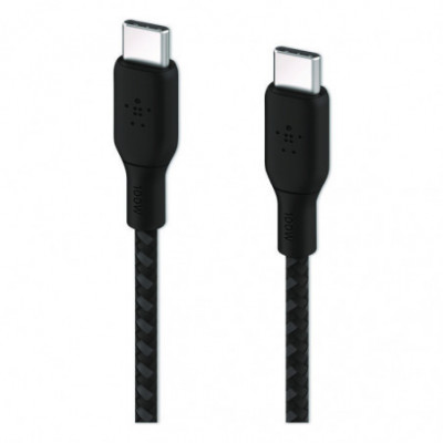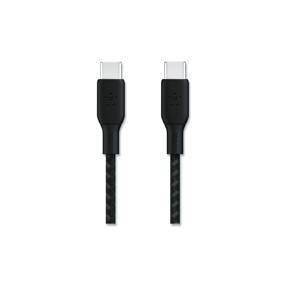 BOOST CHARGE Braided USB-C to USB-C Cable, 100 W Power Delivery, 6.6 ft, Black