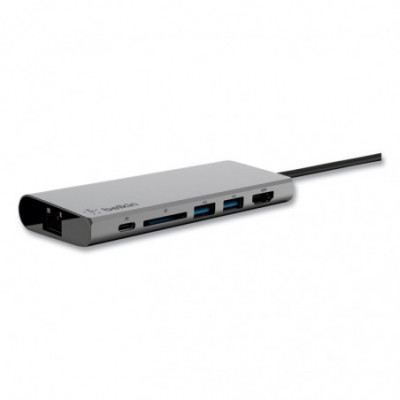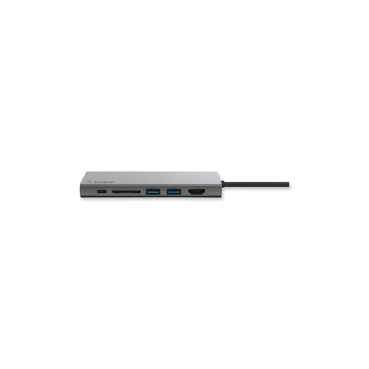 Connect multiple devices to a USB-C laptop through a single cable. The USB-C Multimedia Hub offers USB-A, USB-C, HDMI™ (supporting 4K 30Hz monitors), ethernet and SD card ports, to connect your laptop easily and safely to all kinds of peripherals and devices, including projectors, monitors, SD cards, thumb drives, internet and more.