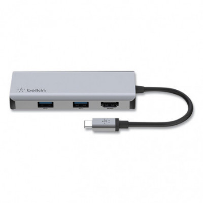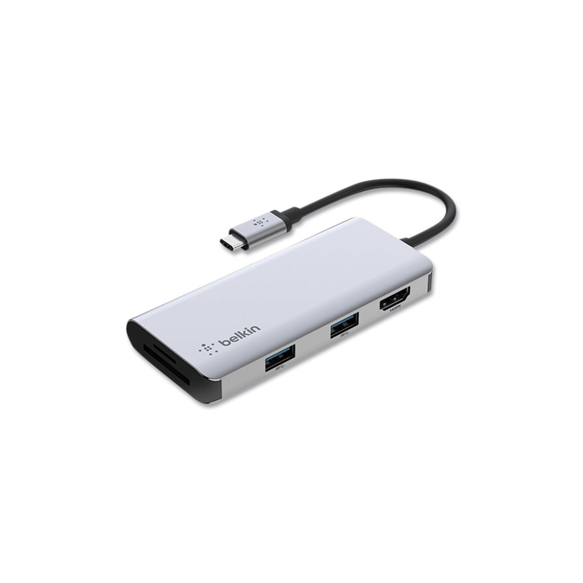 Connect a MacBook, Chromebook or other USB-C laptop to a 4K display and additional devices with this Belkin Connect five-in-one multiport USB-C adapter hub. Its slim, compact and durable aluminum casing makes it a perfect adapter when on the road, at home, at the office or in the classroom. Access USB ports on modern laptops through a single USB-C cable and extend your display to a 4K monitor through its HDMI port, delivering videos up to 4K at 30 Hz. Great for photographers, videographers and content creators as the SD and microSD card slots allow for a fast transfer of data, images and video. Connect to additional devices or peripherals with the two USB-A ports.