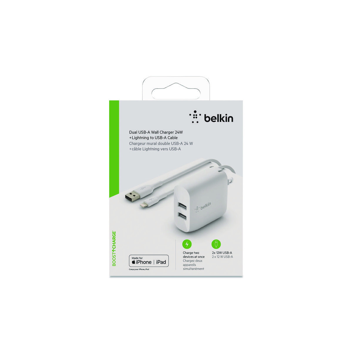 Conveniently charge two phones, power banks, or tablets at the same time. It's perfect when multiple devices need a charge and space is limited. This charger features two USB-A ports, each offering 12 W to charge your devices faster than a standard 5 W charger. Simply plug the charger into a wall socket and you're ready to power up two mobile devices.