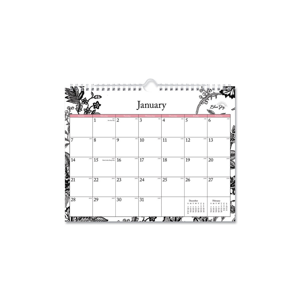 Spruce up your wall or work space while getting organized. Each page displays a different month for easy viewing of the dates ahead. Unruled daily blocks and thick premium pages prevent ink bleed-through. One page per month format includes Sunday through Saturday scheduling, count of days/days remaining, holidays and past and future months reference. Twin-wire binding features a sturdy, wall mount hook for secure hanging. Printed with soy-based ink on acid-free virgin paper. Dated January - December.