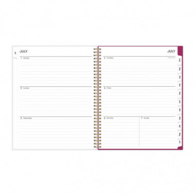 Add a tropical twist to your planning collection. The Mahalo CYO (Create Your Own Cover) planner is ideal for organizing and planning your academic year. The clear cover can be used to display your favorite artwork or pictures. Weekly two-page spread schedules your week Monday - Sunday. Monthly view per two-page spread features a Notes column. The durable monthly tabs allow for easy access to each month. Includes a dual-sided pocket page for your notes and papers. Gold twin-wire binding finishes the look and offers easy page turning. Thick premium pages reduce ink bleed-through. Includes yearly reference calendars, quick reference page, contacts pages, and notes pages. Dated July - June with two bonus monthly views (May - June).