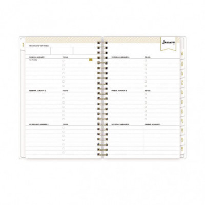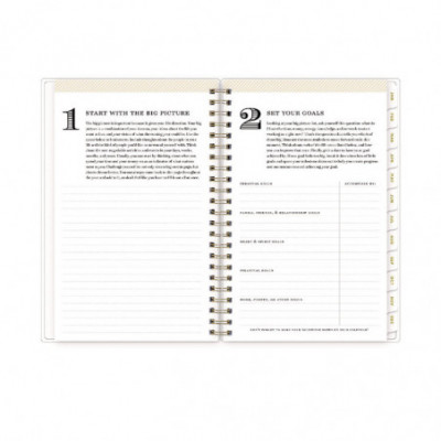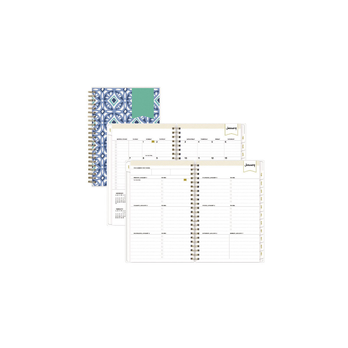 Day Designer for Blue Sky® is a simple and easy system created to help you find balance, enhance your focus and increase your productivity. Though the planner isn't magic and can't live your life for you, it can help you live more intentionally by providing trusted, proven tools for setting goals, creating a plan and taking action each and every day. Simply utilize its detailed directions and comprehensive features to organize your days, weeks and months to set your goals, track your progress and achieve what you set out to do. Start off by reading an introductory letter from Whitney English and then move through its four-step goal setting guide and complete the handy worksheets to ensure you make the most of your year. Weekly spreads feature an inspirational quote along with plenty of space for your daily schedule as well as delineated areas for your to-dos, the week's top three, your gratitude reminders and any week-spanning notes you might have. Tabbed monthly spreads feature large daily blocks for noting special events and plans as well as their own separate areas for month-spanning to-dos and notes. A colorful tile-artwork pattern on the durable, flexible cover pairs wonderfully with its snag-free, polished-metal twin-wire binding to attractively keep your weekly, monthly and annual planning tools held together in one neat, beautiful package. Additionally, six bonus past month spreads, running from July to December of the previous year, make transitioning from one year to the next easy.