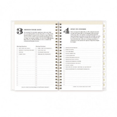 Featuring a simple and easy system, this planner is designed to help you set your goals, track your progress and achieve what you set out to do. Weekly spreads feature plenty of space for your daily schedule, to-dos, notes and more. Tabbed monthly spreads allow for more long-range planning with daily blocks and space for month-spanning to-dos and notes. Beautiful cover features tile geometric artwork and snag-free, polished metal twin-wire binding.
