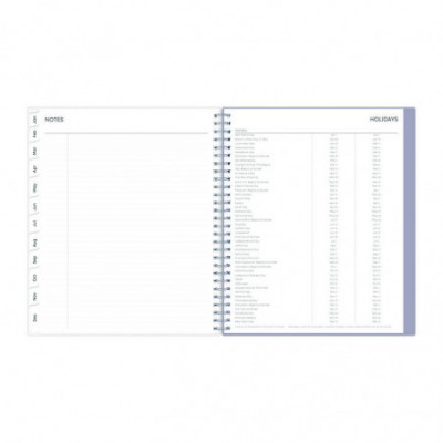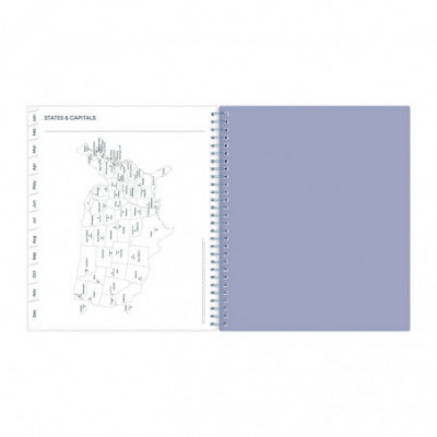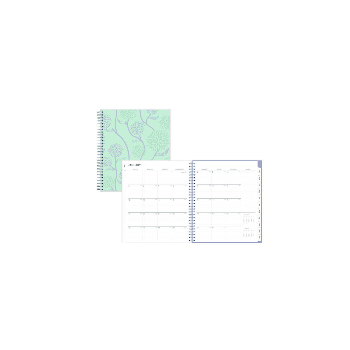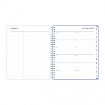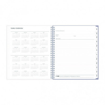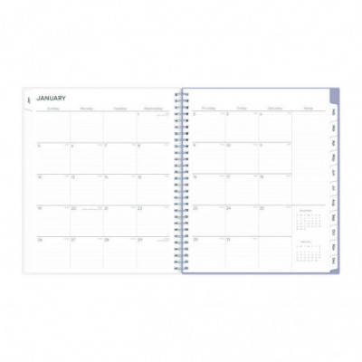 Add a touch of style to getting organized. Durable, coated monthly calendar tabs allow for easy access to your month views while the two-page layout offers plenty of writing space for detailed scheduling throughout the calendar year. Six bonus past months allow for easy annual transitions. Frosted flexible front, solid back cover and twin-wire binding finishes the look and ensures easy page turning. Printed with soy-based ink.