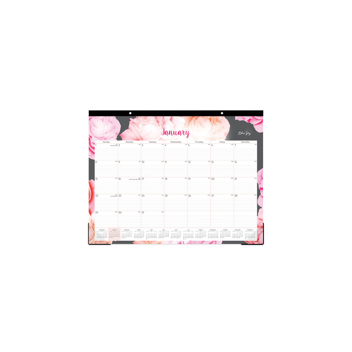 Stylish monthly write-on calendar is perfect for wall or desktop and range 12 months from January to December. One page per month format includes ruled daily blocks, Sunday through Saturday scheduling, count of days/days remaining, holidays and past and future calendar reference blocks. Slim desk pad calendar is printed with soy based ink on thick, premium quality, acid free pages that reduce ink bleed-through. Clear corners keep pages flat. Easy-to-tear perforated monthly pages.