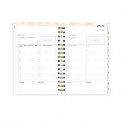 Design your life with Day Designer. An introductory letter from Whitney English and special worksheets designed for identifying and fulfilling your personal goals get you started. Daily planner section features one-day per page views Monday through Friday and two-day per page views for Saturday and Sunday. Two-page per month spreads feature ruled daily blocks and a Notes & To Do checklist.