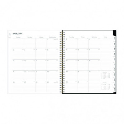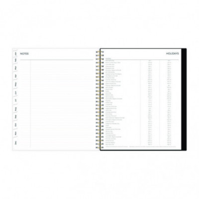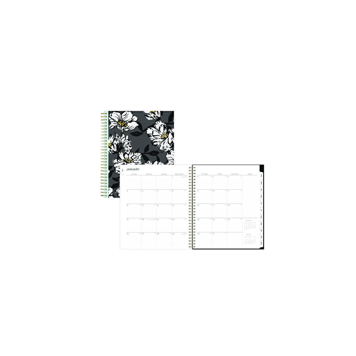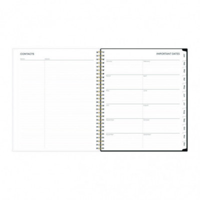 Get ahead with this stunning black and gold floral planner in the "Baccara Dark" design, and stay on top of your monthly plans with stylish flair! Two-page per month spreads offer a visual overview of your time. A separate Yearly Goals page, Contacts pages, Notes pages, Important Dates page and four years of Holidays help you to tackle whatever may come.