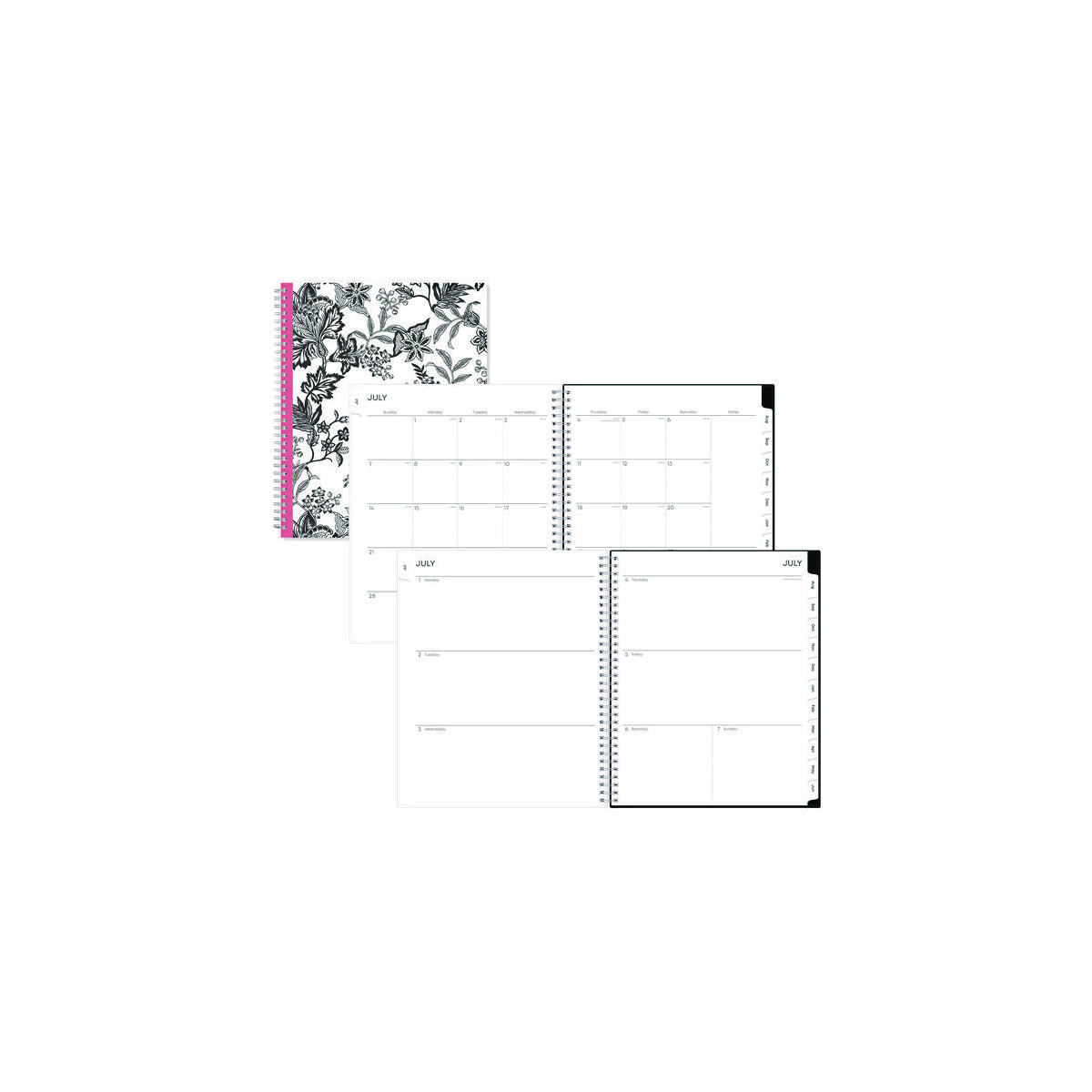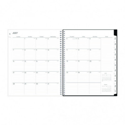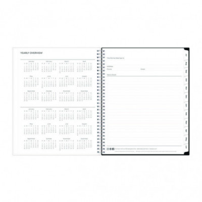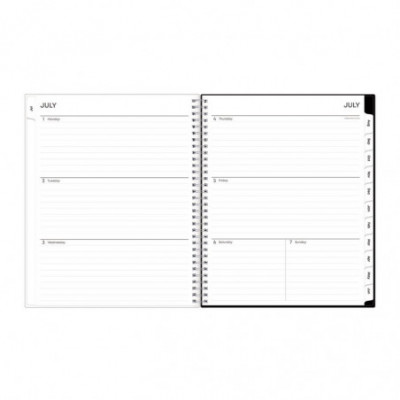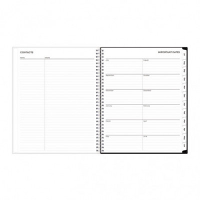 This academic year planner features one week per two-page spread with lined daily blocks. Monthly view per two-page spread includes a notes section for important projects. Includes pages for yearly goals, contacts, reference calendars, and extra notes pages. Thick, premium quality pages reduce ink bleed-through. A clear CYO (create your own) cover pocket allows you to keep track of loose notes, details and papers in the front of your planner. Twin-wire binding and durable, coated monthly tabs offer easy page turning. Dated July to June with two past bonus monthly views (May - June) for easy transition to the new academic year.