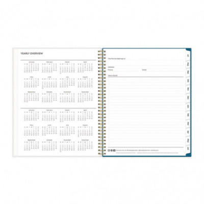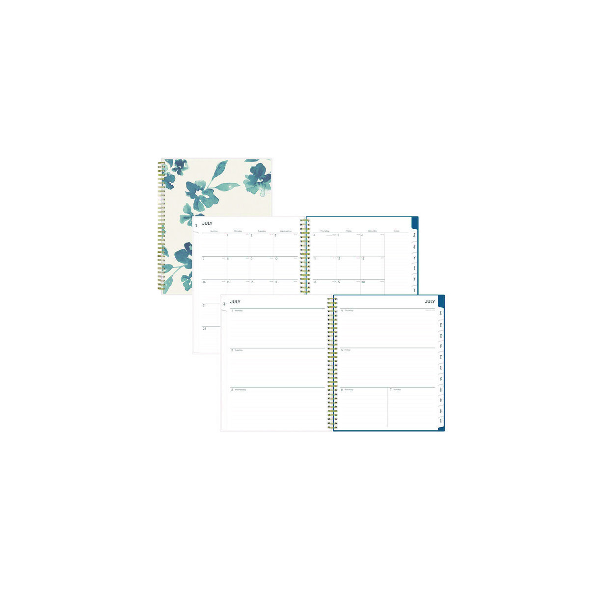 Soothing Bakah Blue floral-pattern academic planner offers two-page weekly spreads with ruled space for notes and important class project information. Two-page monthly views contain previous and next month reference calendars, along with a handy notes section. Two extra past-month views (May - June) for easy transitions to a new academic year.