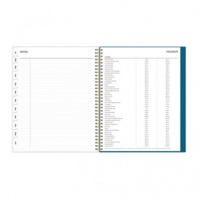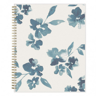 Soothing Bakah Blue floral-pattern academic planner offers two-page weekly spreads with ample ruled space for notes and important class project information. Two-page monthly views contain previous and next month reference calendars, along with a handy notes section, to make long-term planning easy. Major holidays are listed, and elapsed/remaining days are noted. Features a sturdy, flexible cover and twin-wire binding with durable, coated monthly tabs. Dated July to June with two extra past-month views (May - June) for easy transitions to a new academic year.