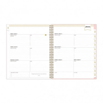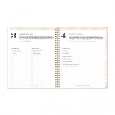 Day Designer planners offer both functionality and modern beauty to help you stay on track and focused throughout your busy days. Includes introductory letter from Whitney English, worksheets for personal goals and intentions, dated calendars, yearly overviews, holidays and notes. This smart, stylish, unique planning system features the Coming Up Roses cover with cream roses on a blush background. Weekly calendar view per two-page spread contains space for daily schedule, to-do list, and top three goals for the week. Monthly calendar view per two-page spread offers a visual overview of your time. A clear CYO (create your own) cover pocket allows you to keep track of loose notes, details and papers in the front of your planner. Twin-wire binding and durable, coated tabs offer easy page turning and access to past, present and future months. Stay on track throughout the year with this planner, dated January to December. The Day Designer® collection of beautiful and functional planning products and accessories inspire busy individuals to live a well-designed life.