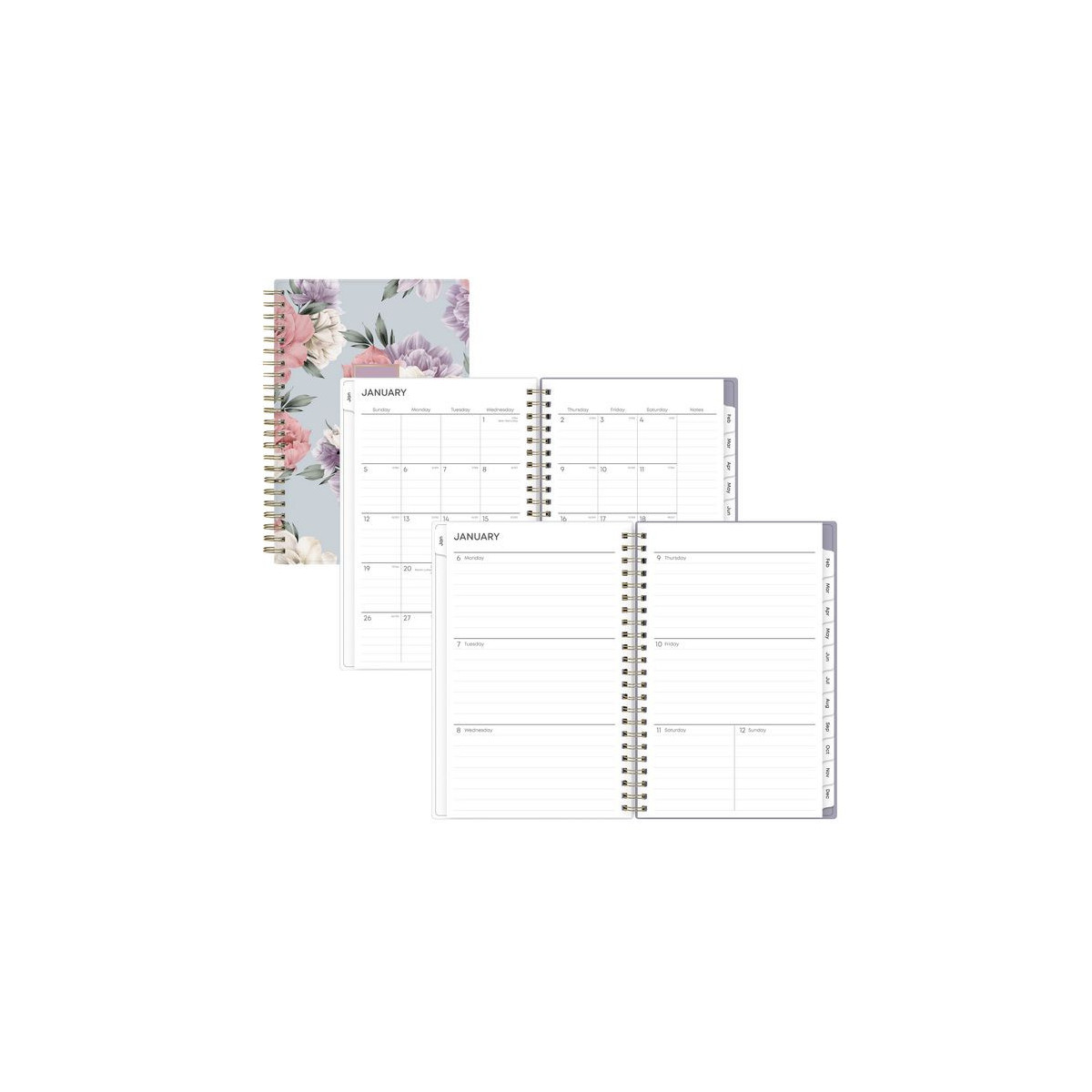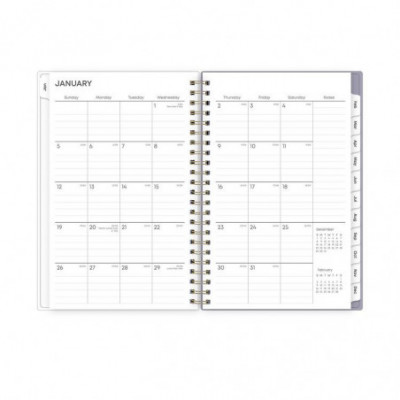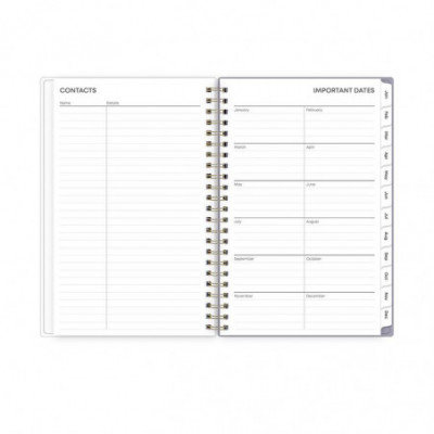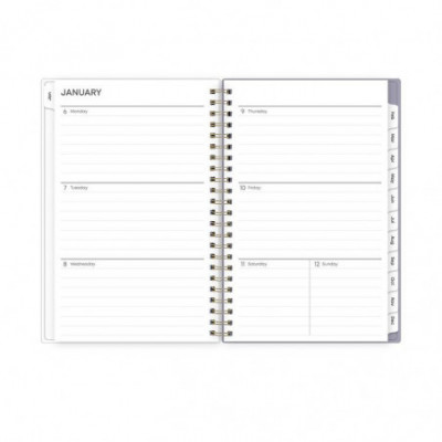 Give your schedule a fresh start and bring order to your busy life with the beautiful Tula Weekly/Monthly Planner. On the cover, its soft floral motif helps inspire peace and tranquility; and inside, a range of planning and scheduling tools help make getting organized easy. Weekly spreads feature an open scheduling format for every day of the week. Monthly spreads provide plenty of space for daily notations and a separate section for capturing important tasks and project details. Each month's durable, coated tab offers quick access to the past, present and future. Six bonus, non-tabbed, past-month spreads run from July through December to help you with your transition into the new year. Additional resources in the back of the book help you plan out your year and keep everything on track. Flexible cover and snag-free twin-wire binding work together to ensure that everything stays neatly together. Thick, premium, acid-free pages prevent your pen's ink from bleeding through. Printed using soy-based inks.