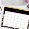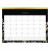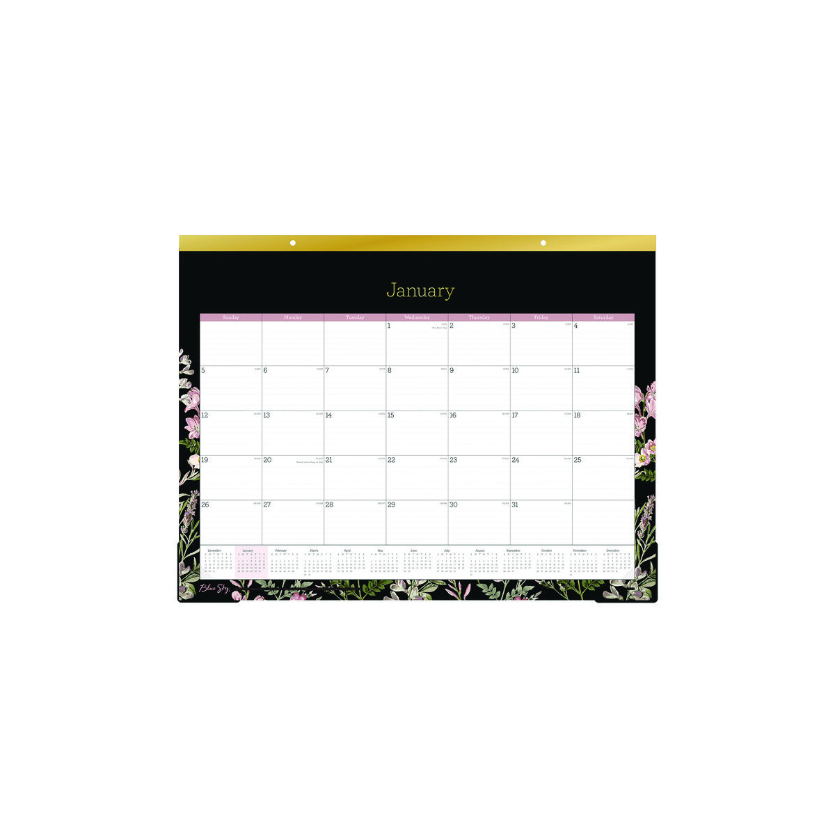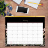Whether you need a desk-pad calendar for your office or a wall calendar just about anywhere, the stylish Neveah Monthly Calendar can cover your time-management and scheduling needs. A sophisticated black and pink floral design adorns each page to inspire you throughout the year. Ruled daily blocks help you keep your notations neat, while the thick, premium pages prevent your ink from bleeding through. Monthly format features daily blocks running Sunday through Saturday, a count of days past/days remaining and all major holidays labeled. A full-year reference calendar running along the bottom of each page allows you to keep track of this year's flow, and easy-tear page perforations make moving forward from month to month a neat and tidy process. Cardboard back provides a solid writing surface, and the pad's clear corners keep each month's page flat without obscuring your view. Printed using soy-based inks.