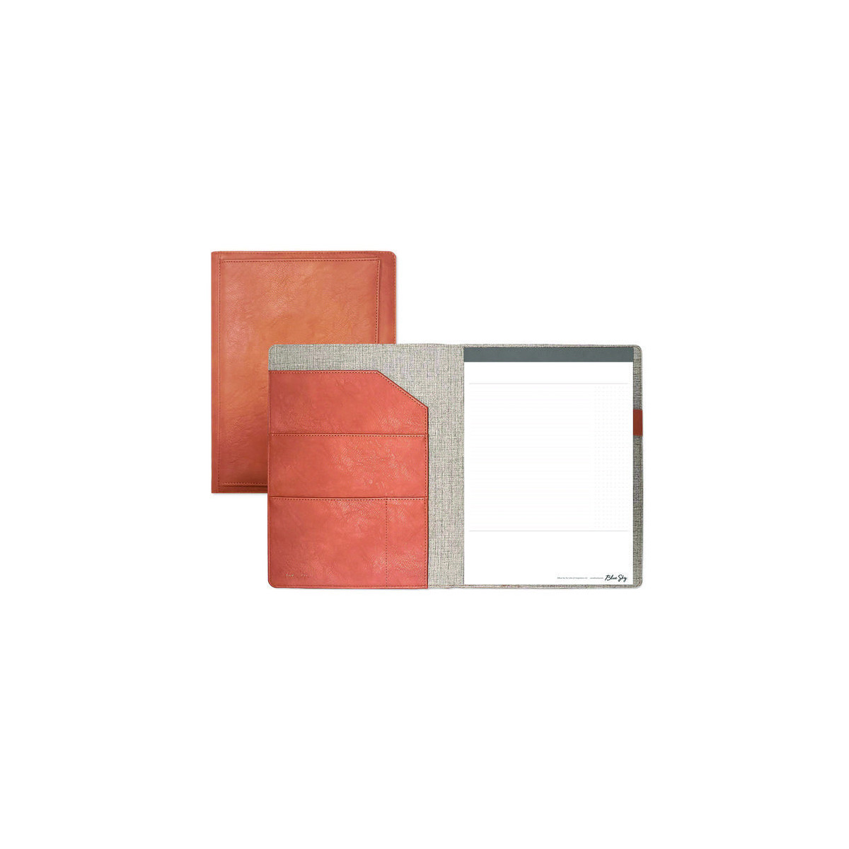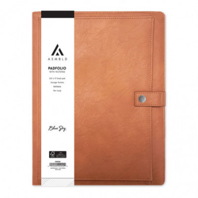 Class up your business meetings and interviews with the ASMBLD padfolio. Perfect for job interviews, the storage pockets hold resumes and business cards with ease, while the lined letter-sized notepad provides ample writing space. With a tan faux leather cover and gunmetal closure, this handsome portfolio makes a powerful first impression. The cover is undated, reusable, and designed for long-term use.