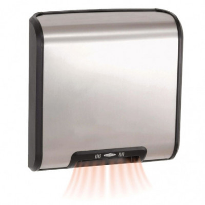 Patented dual-flow parallax ducts project air in a broad swirling pattern, ensuring fast and comfortable hand drying. Touch-free, auto-sensor turns dryer on immediately after hands are placed within proximity and off immediately after hands are removed. With a maximum noise imprint of 73 dBA, this unit provides an excellent balance between quiet operation and task efficiency. ADA Compliant, barrier-free design results in excellent, "from-wall" projection. Included surface-mount installation kit makes it ideal for simple additions, renovations or new construction projects.